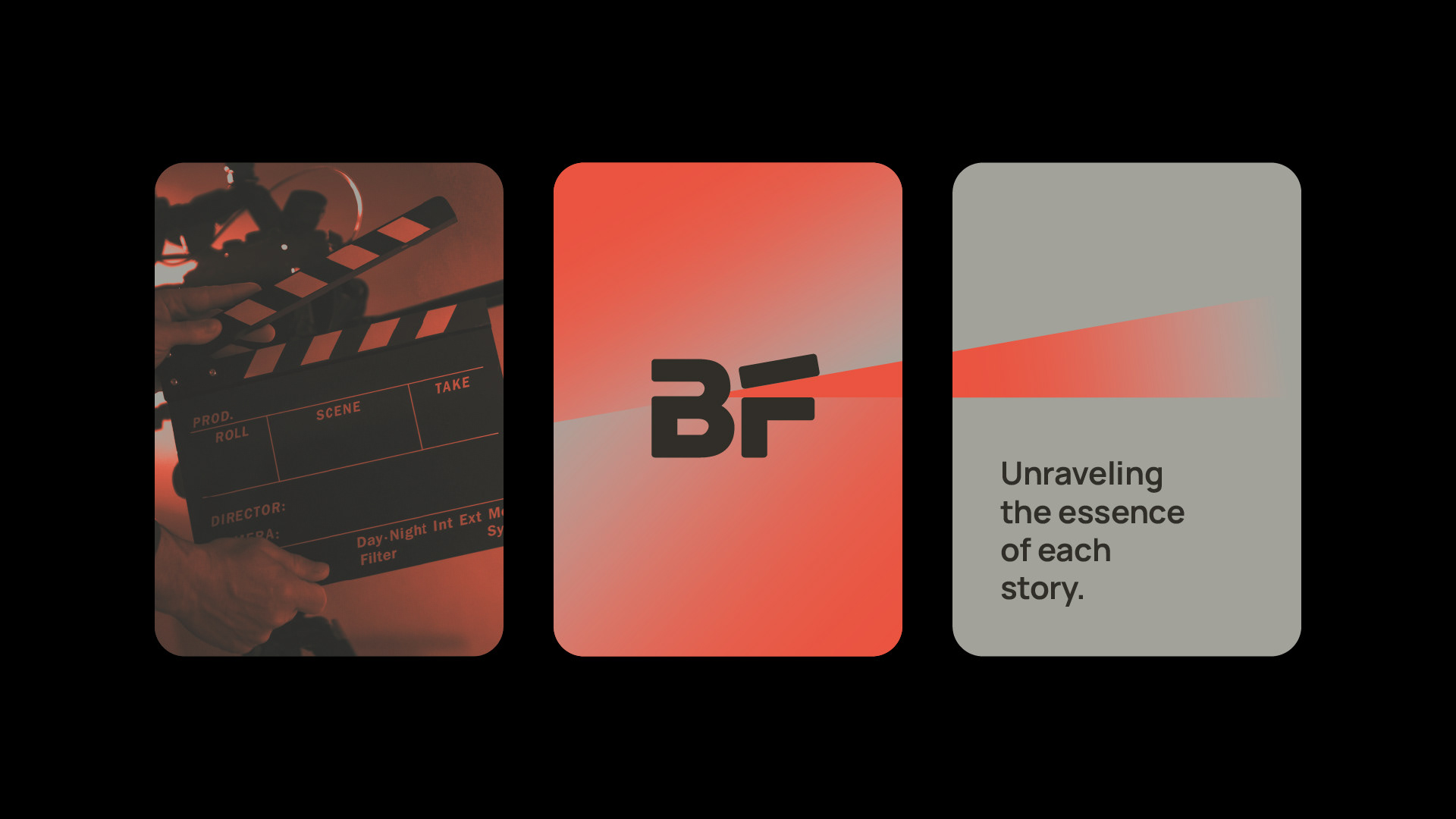 To meet these challenges head-on, we developed a comprehensive visual identity centered around the concept of “unraveling the essence.” Inspired by the partnership’s creativity and boldness, we designed a custom logo featuring a dynamic and modern aesthetic. The logo includes a unique “BF” monogram, symbolizing the brand’s initials, and a visual motif reminiscent of a narrative thread, emphasizing storytelling.