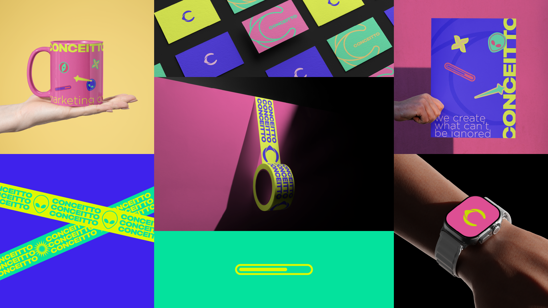 By combining a simple yet memorable symbol with an exuberant color palette and strong messaging, INDUSTRIA® helped Conceitto articulate a singular position: it’s the agency that makes brands impossible to ignore.