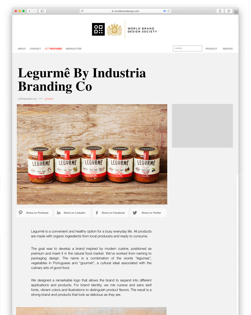 Branding and packaging design we developed for LEGURMÊ featured on World Brand Design Society.