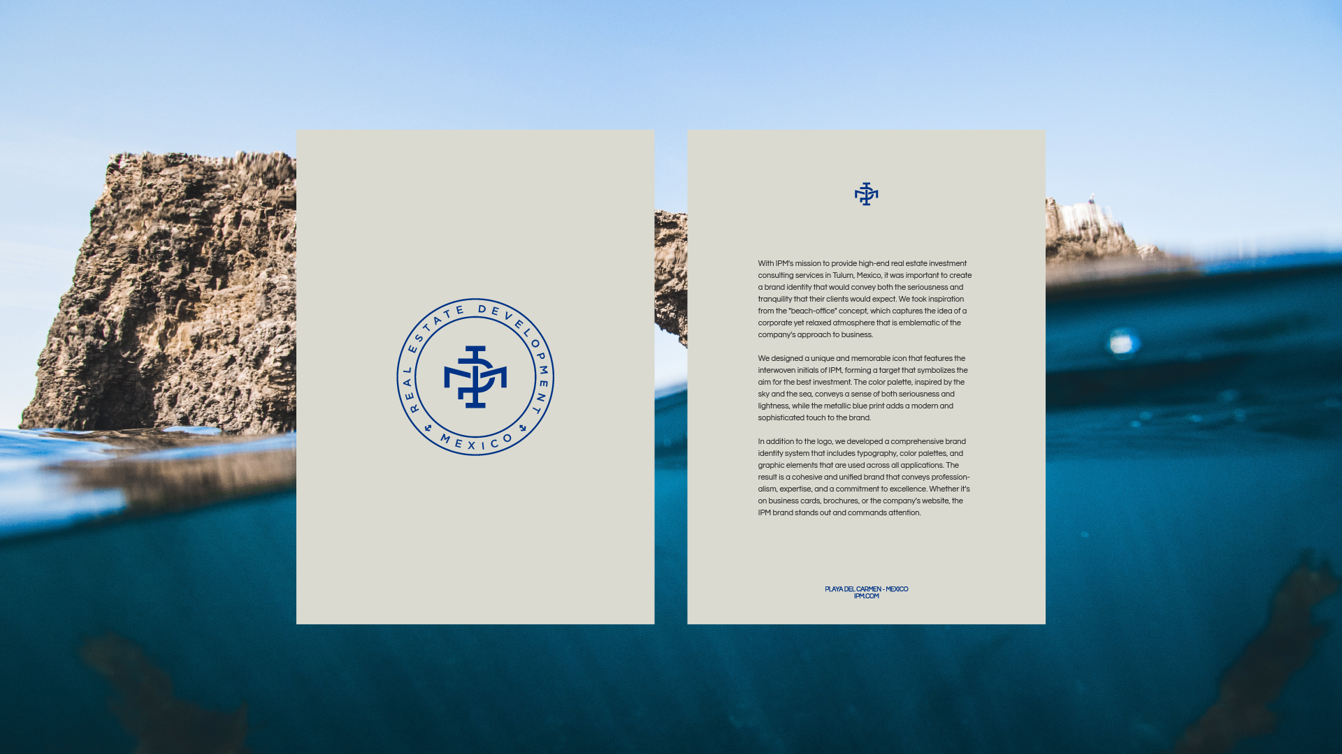 With IPM's mission to provide high-end real estate investment consulting services in Tulum, Mexico, it was important to create a brand identity that would convey both the seriousness and tranquility that their clients would expect. We took inspiration from the "beach-office" concept, which captures the idea of a corporate yet relaxed atmosphere that is emblematic of the company's approach to business.