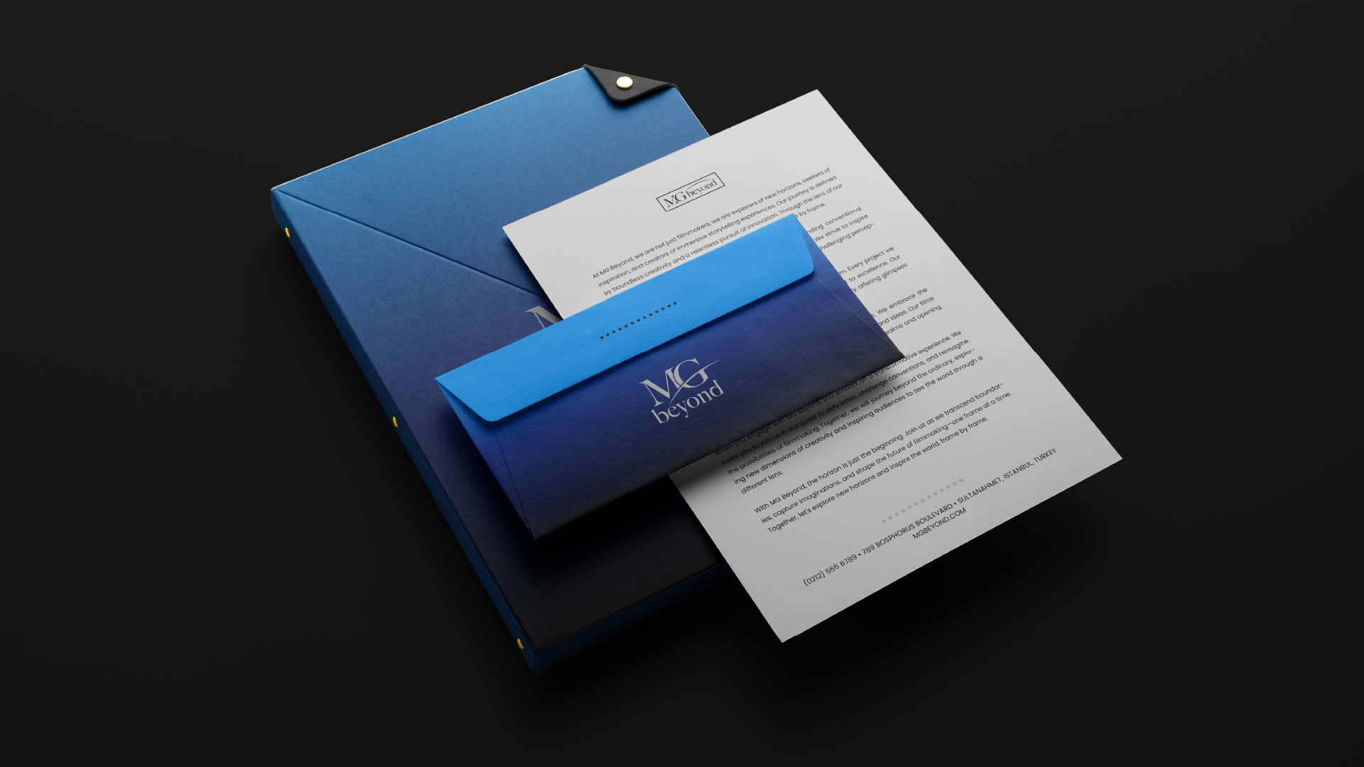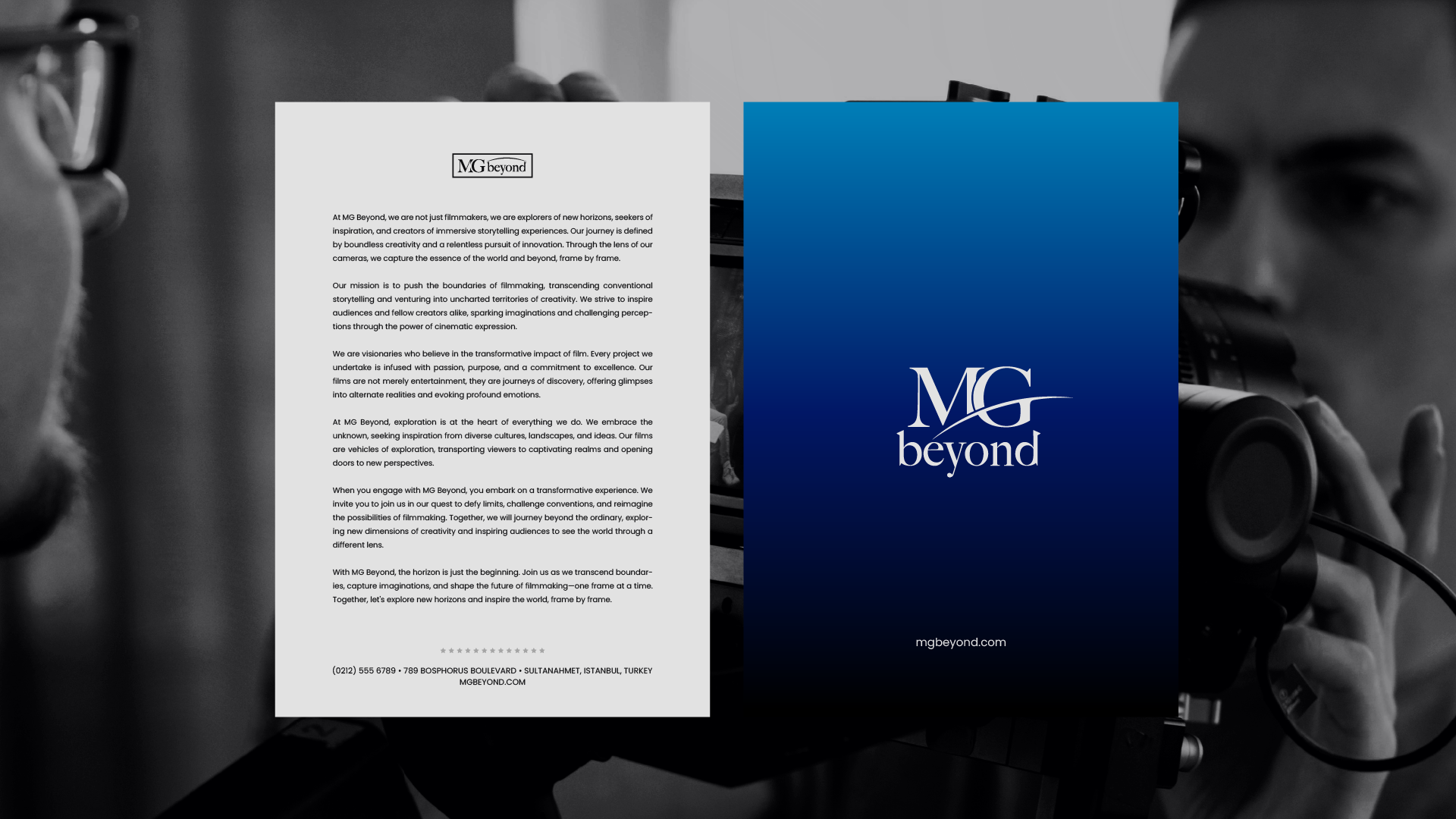 MG Beyond is a visionary film company based in Istanbul, Turkey, renowned for its commitment to producing captivating and innovative films. They approached our branding agency with the goal of solidifying their brand identity and establishing a distinct market presence. The objective was to create a logo and visual identity system that embodies their vision, professionalism, and boundless creativity.