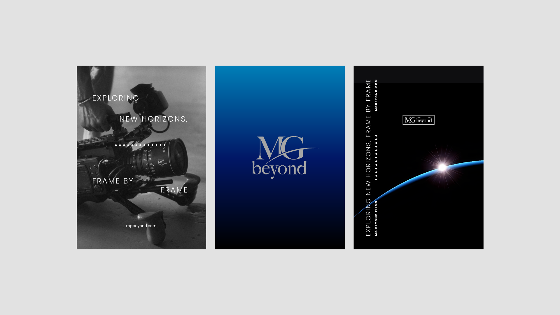 Drawing inspiration from the horizon line and the captivating colors of space and planet Earth, our team developed a distinctive brand identity for MG Beyond. The centerpiece of this identity is a versatile logo that captures the essence of exploration and limitless creativity. The logo's design allows for adaptability across various applications, ensuring consistency and recognition across different platforms. We leveraged a thoughtful use of color and design elements to create a dynamic visual experience that reflects MG Beyond's innovative spirit. The resulting brand identity communicates professionalism, creativity, and a forward-thinking vision, positioning MG Beyond as a trailblazer in the film industry.