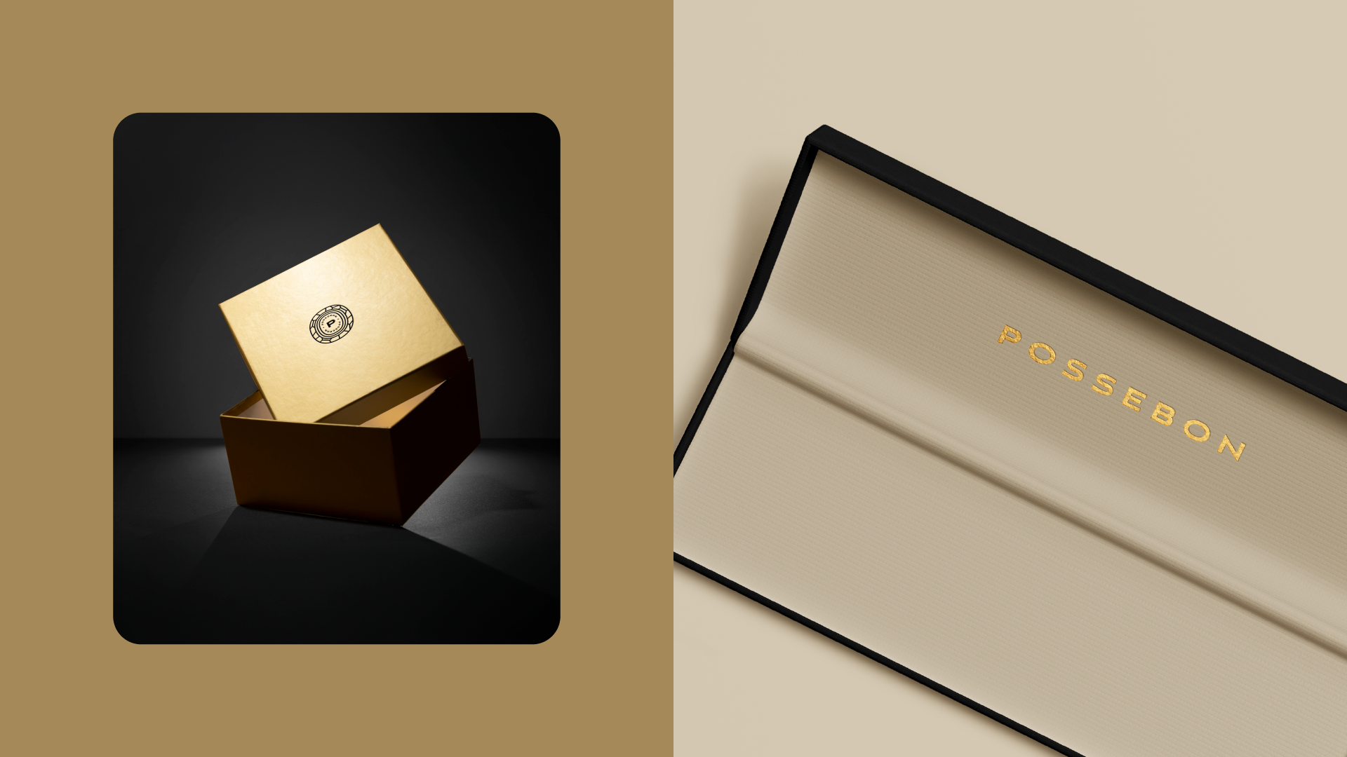 In response to these challenges, we conceived an identity that draws inspiration from the flawless form of cabochon-cut stones encased in their meticulous settings. This reimagined identity is anchored by an elegant wordmark that captures both simplicity and fortitude. It is further accentuated by a palette steeped in opulence—Midnight Onyx juxtaposed with Regal Gold, Pebble Beige interplaying with Cloud Mist, and Golden Sand hues—all mirroring nature’s own spectrum and echoing the sumptuousness intrinsic to Possebon’s offerings.
